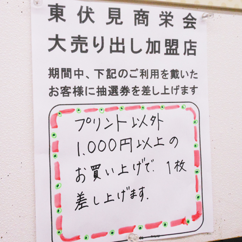 「東伏見商栄会」加盟店にて条件を満たすお買い物をしていただきますと、